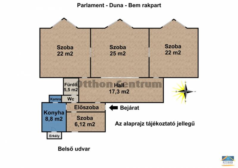 Szeretne az ablakából kinézve minden napszakban gyönyörködni a Parlamentben?Különleges bauhaus lakást keres, melyből szökőévente csak egy eladó?Megtalálta! Jöjjön és nézze meg személyesen!A LAKÁS JELLEMZŐI:* 112 négyzetméter alapterületű, 2. emeleti, 3+1 fél szoba + hall-os.* Belmagassága 300 cm, klasszikus stílusú, gyönyörű eredeti kétszárnyú ajtókkal, stukkókkal.* 2017-ben felújított, mely kiterjedt az alábbiakra: - villamos hálózat cseréje, - fűtésrendszer korszerűsítése (új gáz kombi cirkó és radiátorok), - külső fa nyílászárók cseréjére újakra, melyek magas minőségű duplán hő és hangszigeteltek, - redőnyök cseréje az eredeti stílus megőrzésével, - konyha és fürdőszoba burkolatainak és szaniterek cseréje, - belső nyílászárók mázolása, - erkély burkolása.* Belső válaszfalainak többsége nem tartófal, így tetszőlegesen alakítható az elrendezése igény esetén.* Erkélye és félszobája a belső zöld, csendes udvar felé néz, három szobájának ablaka nyugati tájolású és a Parlamentre, Dunára néz.* A lakáshoz tartozik egy 20 négyzetméteres tároló is.TÁRSASHÁZ:* Az épület 1933-ban épült, öt emeletes társasház, 13 lakással.* Az épületben a gáz és vízhálózat fel lett újítva.* A liftes társasháznak zárt lépcsőháza van.* Belső udvara zöld, fákkal rendelkezik.KÖRNYÉK:* A lakás az I. kerület Víziváros részén, a Bem Rakparton helyezkedik el a Szilágyi Dezső tér és a Batthyány tér között.* Budapestnek ez az egyik legkedveltebb része, tele túrista látványosságokkal.Pl: Alagút, a Budavári sikló, a “0” kilométerkő (Clark Ádám tér), Szilágyi Dezső téri Szent Anna és a Szent Ferenc sebei templomok, Királyi gyógyfürdő.KÖZLEKEDÉS:* A környéken a közlekedés kiváló.* 2 perc sétára van a Batthyány téri Metró és Hév megálló, itt közlekedik ugyancsak 19-es és 41-es villamos is és számos buszjárat.Saját részre és befektetésnek is ajánlom kimagasló értékállósága és exkluzív elhelyezkedése miatt.Bővebb információért és megtekintéssel kapcsolatban hívjon bizalommal!