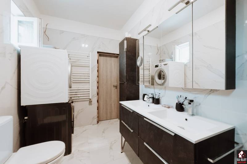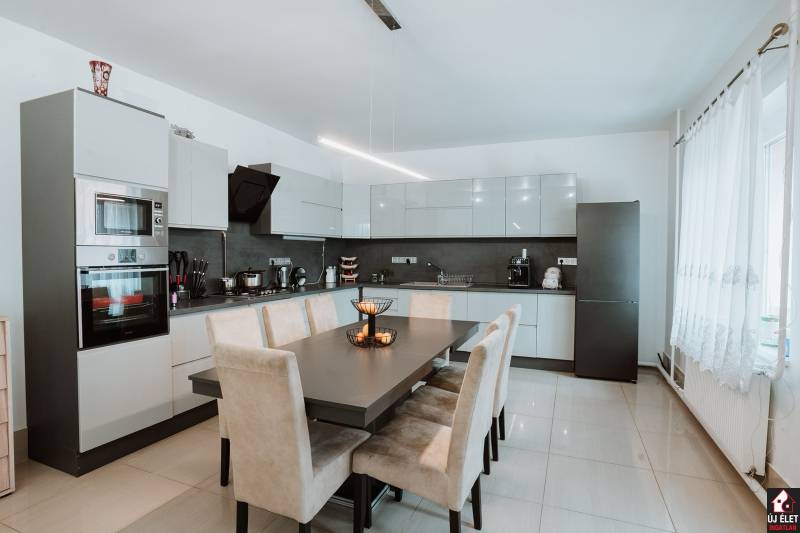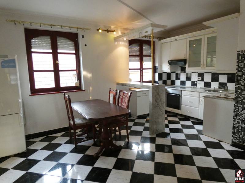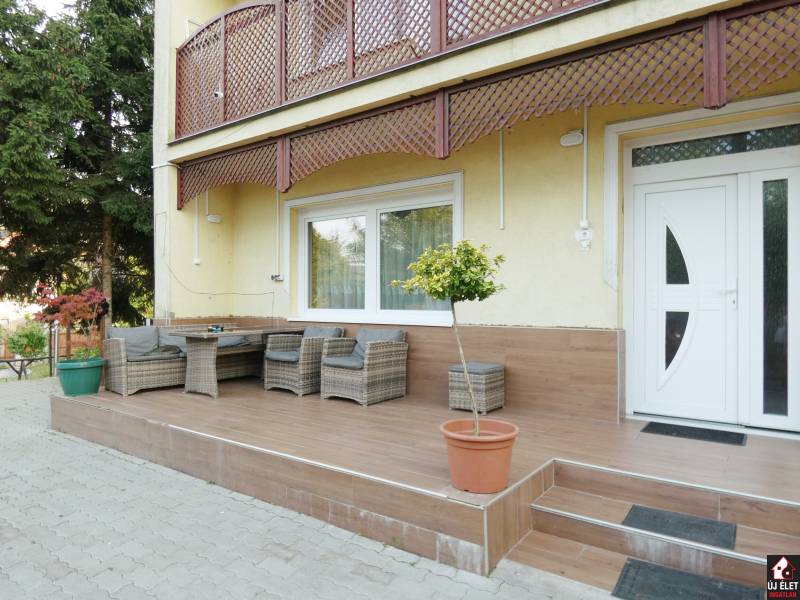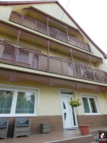 Eladó Gödöllő, Fenyves városrészén, a Fenyvesi Nagyúton egy jelenleg 6 darab apartmannak kialakított, 516 m2 hasznos alapterületű (bruttó 600 m2-es) épület, egy 1.408 m2-es telken.A telken jogilag is 2 db lakóház épült.A 3 szintes lakóházban 2 apartman, a 2 szintes lakóházban 3 apartman, és a tágas melléképületben 1 apartman lett kialakítva.A legnagyobb lakás az utcafronti házban, 3 szinten helyezkedik el. Összesen 240 m2. (az alaprajzon az 1-es apartman)A földszinti rész 60 m2, ami valójában egy tágas amerikai konyhát, a lépcsőházat és a teraszt jelenti.Az 1. emeleten 3 szoba, a kádas fürdőszoba és az erkély található, 90 m2-en.A 2. emeleten pedig beépíthető pluszban bruttó 90 m2. Vagy a lenti apartmant bővíthetjük még 3-4 szobával és egy újabb fürdőszobával, vagy kialakítható akár egy új, amerikai konyhás + 3 szobás + fürdőszobás apartman. (Az áram, víz, csatorna, fűtés feljön erre az emeletre, de ez a szint nincs kiépítve.)Innen az ablakból, az erkélyről GYÖNYÖRŰ PANORÁMA tárul a szemünk elé. A két épület közül ez a ház épült korábban, 1984-ben, és ez tavaly TELJESKÖRŰEN FEL LETT ÚJÍTVA. A villanyvezetékek, a gépészet, az ablakok, a burkolatok, a konyhabútor, minden új. (Igény esetén, mivel a lépcsőház az épület szélén található és kívülről még van hely a telken, így megoldható, hogy az emeleti részek, akár kívülről, közvetlenül megközelíthetőek legyenek.)Ugyanennek az épületnek a földszintjén, egy oldalsó bejárattal egy 28 m2-es kis apartman is helyet kapott. (az alaprajzon a 2-es apartman)A másik épület 2007-ben épült. Ez a ház földszint + egy emelet magas. (30 cm-es Porotherm téglából épült + szigetelés.)A földszinten két apartman található.Az egyik egy tágasabb nappali + 2 szobás, 78 m2-es, sarokkádas külön fürdő, külön wc-vel rendelkező modern apartman. (az alaprajzon a 4-es apartman)A másik kisebb, összesen 32 m2-es lakrész.Itt jelenleg egymás mellett van maga a lakás és a fürdőszoba, amit külön ajtón keresztül közelíthetünk meg, de megoldható, hogy a fürdő a lakásból belülről nyíljon, vagy a fedett terasz egy kis részének beépítésével egy tágas előszobából nyílhatna a szoba is és a fürdőszoba is. (az alaprajzon a 3-as apartman)Ennek az épületnek az emeletén, külső lépcsőn megközelítve, egy nappali + 2 szobás, bruttó 78 m2-es lakásba jutunk. (az alaprajzon a 6-os apartman)A fűtés mindkét lakóházban, azaz a fentebb felsorolt apartmanokban gázkazán és vegyes tüzelésű kazánnal is megoldható.A melléképületben kialakított apartmanban csak fa tüzelésű kazán van.A melléképületben kialakított apartmanban pedig egy stúdiólakás lett kialakítva. (60 m2). A tágas térből csak a fürdőszoba van külön helyiségben. Tartozik hozzá egy méretes fedett terasz is. (az alaprajzon az 5-ös apartman)De megoldható, hogy kényelmesen leválasszunk egy hálószobát is.Vagy ha nyitottak vagyunk némi átalakításra, akkor 2 pici apartman is lehet belőle. Ezesetben egy plusz fürdőszobát kell ide kiépítenünk. De ez megoldható.A telken 2 db vízóra, 2 db villanyóra és 2 db gázóra található. Egyik a 3 szintes épületé, a másik pedig a többié.Az apartmanok egy része felújított, a más része felújításra szorul.Kiváló lehetőség befektetőknek, vagy bárkinek, aki a kiadott ingatlanjaiból szeretne megélni....és ha nem ijed meg egy kis átalakítástól, akkor a 6 helyett, akár 8 apartman is kiépíthető.(A fentebb leírtak szerint.)Siófoki csere vagy kisebb ingatlan beszámítása szóba jöhet.Hívjon, akár az esti órákban, akár hétvégén is!
