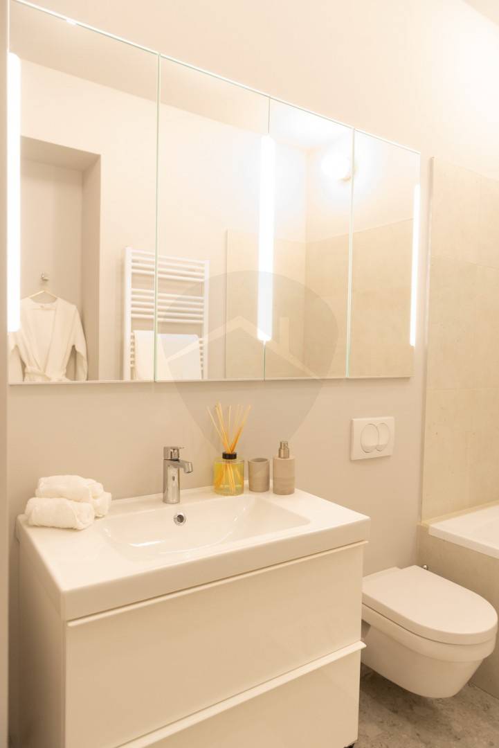 Tisztelt Befektetők figyelmébe ajánljuk ezt az exkluzív, új építésű lakóingatlant Budapest belvárosának szívében, az elegáns Hercegprímás utcában. Ez a 90 négyzetméteres, modern lakás páratlan lehetőséget kínál mindazok számára, akik egy prémium kategóriás, egyedi tervezésű ingatlant keresnek, akár saját használatra, akár hosszú távú befektetésként.Az ingatlan három tágas szobával és két fürdőszobával rendelkezik, melyek elrendezése tökéletesen alkalmas családok számára, de kiváló lehetőség hosszú távú bérbeadásra is. A lakás teljesen bútorozott, gépesített és légkondicionált, így azonnali beköltözésre készen áll, megkönnyítve ezzel a bérbeadást is. Az amerikai konyhás, világos nappali modern LED hangulatvilágítással emeli a lakás fényét, különleges atmoszférát teremtve.A Hercegprímás utca az V. kerület egyik legkeresettebb környéke, ahol a központi elhelyezkedés tökéletes közlekedési lehetőségekkel párosul. A környező üzleti negyedek közelsége különösen vonzó a fiatal szakemberek és üzletemberek számára, akik otthont keresnek a munkahelyükhöz közel. Az ingatlan tehermentes, amely tovább növeli vonzerejét, mivel azonnal birtokba vehető és nem igényel felújítást.A környék kiemelkedő infrastruktúrával rendelkezik, a közelben számos bolt, étterem és kávézó található, így minden szükséglet könnyedén kielégíthető. A csendes, biztonságos utcák, a barátságos szomszédság, valamint a minimalista kialakítás és a praktikus beépített bútorok garantálják, hogy minden négyzetméter maximálisan kihasználásra kerüljön.Ez az ingatlan nem csupán egy lakás, hanem egy életstílus, amely a modern városi élet minden kényelmét és előnyét kínálja. Ha Ön is szeretné kihasználni ezt a páratlan lehetőséget, kérem, ne habozzon kapcsolatba lépni velem! Készséggel válaszolok minden kérdésére, és segítek megtalálni az Ön számára legmegfelelőbb befektetést.