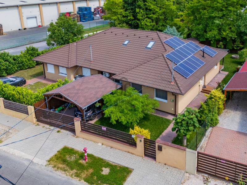 Ez az ingatlan kivételes lehetőséget kínál Halásztelken, ideális választás lehet több gyermekes családok számára, hiszen tág terekkel és kényelmes kialakítással várja új tulajdonosait!A nettó 136 négyzetméteres, 5 szobás családi ház jó állapotban van, így nem szükséges hónapokat várni a felújítással. Modern kialakítású, beépített bútorokkal és konyhával felszerelt otthon, mely praktikus és esztétikus megoldásokat kínál.A telek mérete 450 négyzetméter, rendezett kerttel, ahol automata öntözőrendszer gondoskodik a növények folyamatos frissességéről. Az 18 négyzetméteres terasz ideális helyszín reggeli kávézásokhoz és baráti összejövetelekhez, a LED hangulatvilágítás pedig különleges hangulatot teremt az estékhez.Az ingatlan környezete kiválóan felszerelt: környezetbarát technológiákkal, például napelemmel, fúrt kúttal és automata öntözőrendszerrel van ellátva, biztosítva a fenntarthatóságot és az alacsony rezsiköltségeket. A kert remek lehetőség kikapcsolódásra és szabadidős tevékenységekre, így minden nap élvezheted a természet közelségét.Elhelyezkedése rendkívül kedvező: mindössze 2 perc sétával elérhető a buszmegálló, ahonnan könnyen megközelíthető a Campona bevásárlóközpont és a Csepeli HÉV. A környék tele van jó oktatási intézményekkel és egészségügyi szolgáltatásokkal: óvodák, bölcsődék, iskolák 15 perces sétával elérhetők, továbbá egy magán bölcsőde mindössze 3 perc sétára található. Az orvosi rendelők szintén 15 perces sétával elérhetők, így minden szükséges szolgáltatás könnyen és gyorsan hozzáférhető.A biztonságot és kényelmet növelik a redőnyök és szúnyoghálók, melyek az otthon komfortját fokozzák. Halásztelek csendes, mégis könnyen megközelíthető városrészében található ez az ingatlan, amely kiváló lehetőség saját otthon kialakítására.A ház tehermentes, így gyorsan és zökkenőmentesen kezdheted el új életedet itt. Ne hagyd ki ezt a kivételes lehetőséget! Amennyiben kérdésed van, vagy szeretnéd megtekinteni az ingatlant, bátran kereshetsz minket!Segítséget nyújtunk a vásárláshoz pénzügyi szakembereink bankfüggetlen pénzügyi termékkínálatával, valamint ingatlan szakjogászunk biztosítja a problémamentes vásárlást.