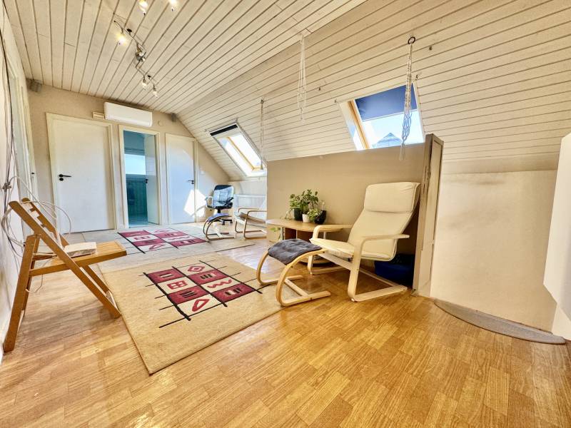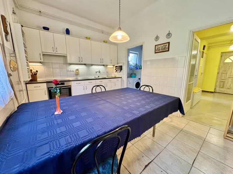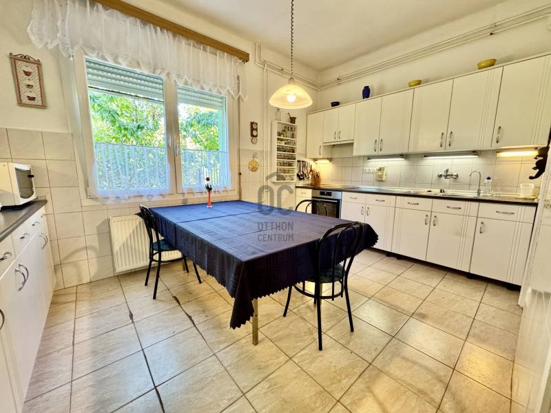 Egy elismert építész saját családjának álmodta meg.Nem akármilyen házról van szó: olyan szakember otthonáról, aki a kerületben számos lakóház és lakás terveit jegyzi. Amikor egy építész magának tervez, nem köt kompromisszumot sem anyagban, sem szerkezetben – ez a ház ennek a gondosságnak a kézzel fogható eredménye.A jelenlegi elrendezés szerint 6 szoba áll rendelkezésre ,de a terek kialakításának köszönhetően könnyedén bővíthető akár 9 szobává is .A téglaépítésű, zsindelytetős ház két szintje ideális választás kétgenerációs együttélésre: külön lakrészek, mégis egy közös otthon. A nagyszülők, szülők és gyerekek úgy élhetnek együtt, hogy mindenkinek megmarad a saját élettere.A belső terek világosak és barátságosak: a nagy könyvespolcos nappali igazi központja a háznak, a szobák napfényesek és jól bútorozhatók. A két szinten külön konyha és több fürdőszoba is helyet kapott, így a családtagok kényelmesen, egymást nem zavarva élhetik a mindennapokat.Műszaki tartalom:•Gáz cirkó fűtés puffer tartállyal kombinálva•Alternatív fűtés vegyes tüzelésű kazánnal•Réz villanyvezetékek az emeleti szinten•Ipari áram a garázsban – műhelyhez, gépekhez vagy elektromos autó töltéséhez ideális•Két klíma a nyári komfortértAz udvar térkövezett, a dupla garázsban két autó fér el, a szabadban pedig további kettő parkolhat. A kert nemcsak tágas, de igazán szerethető is: virágos ablakok, zöld fák, bokrok, és egy öreg diófa, amely árnyékot ad a nyári napokon, s köré gyűjti a családot, ahogy egy igazi otthonhoz illik. A fedett kerti konyha hosszú asztallal és sütővel pedig tökéletes helyszíne a grilleknek és baráti összejöveteleknek.A 1009 m²-es telek szabad teret ad a fantáziának – játszótér, konyhakert, medence, vagy egyszerűen csak egy árnyékos pihenőkert is könnyedén kialakítható rajta.Ez a ház többről szól, mint falakról és tetőről. Ez egy hely, ahol a családi történetek gyökeret vernek – ahogy a kert diófája is teszi, évről évre erősebben.