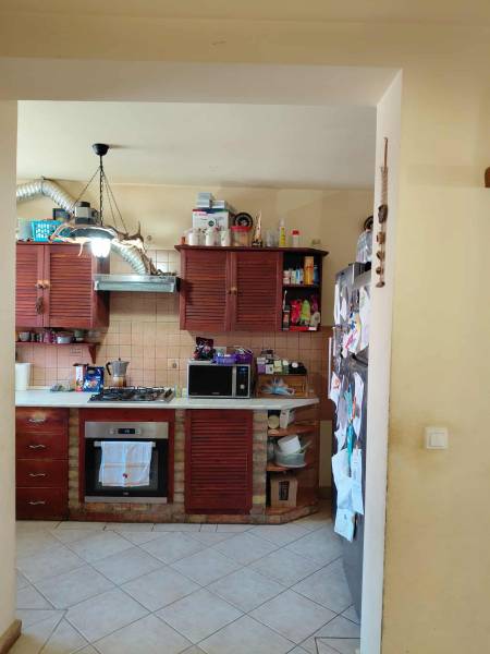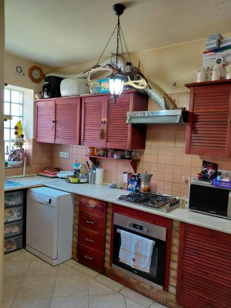 Pilisvörösváron, csendes helyen eladó egy felújított ikerház.Csendes, mégis könnyen megközelíthető részen kínálunk eladásra egy kiváló adottságokkal rendelkező ikerházat. Az 584 m²-es telek több lehetőséget kínál: kertészkedés, kikapcsolódás vagy akár vállalkozás.A ház masszív, 30-as téglából épült (1978), majd 2008-ban teljes felújításon esett át. 15 cm-es hőszigetelést kapott, valamint műanyag, hőszigetelt nyílászárók is beépítésre kerültek. A fűtést vegyestüzelésű kazán biztosítja, de a gáz is telken belül elérhető.Helyiségek elosztása:-földszint (85 m²): nappali, szoba, konyha-étkező, előszoba, kamra, kazánhelyiség, fürdő + WC-emelet (70 m²): három nagy hálószoba, gardrób, valamint egy tágas fürdőszoba, amely elő van készítve, így saját elképzelés szerint fejezhető be.A közművek közül víz, villany, csatorna bekötve, a gáz telken belül található meg.Extrák:-kb. 60 m²-es melléképület – műhelynek, tárolónak is ideális-autószerelő akna-ásott kút – öntözéshez tökéletesElhelyezkedés:-vasútállomás: gyalogosan kb. 10 perc-buszmegálló: 3 perc sétárabevásárlási lehetőségek, iskolák, óvodák: könnyen elérhetők-gimnázium: szintén a közelben található.Ez az ingatlan többgenerációs családi otthonként, vállalkozás helyszíneként is remek választás.Tágas terek, jó elosztás, számtalan lehetőség – csak a fantázia szab határt! Ez az ingatlan ideális választás mindazok számára, akik nyugodt, kertvárosias környezetben keresnek.A hátsó ikerházfélhez szorgalmi útat kell bíztosítani.Ha további kérdése lenne vagy megtekintené az ingatlant, kérem hívjon!