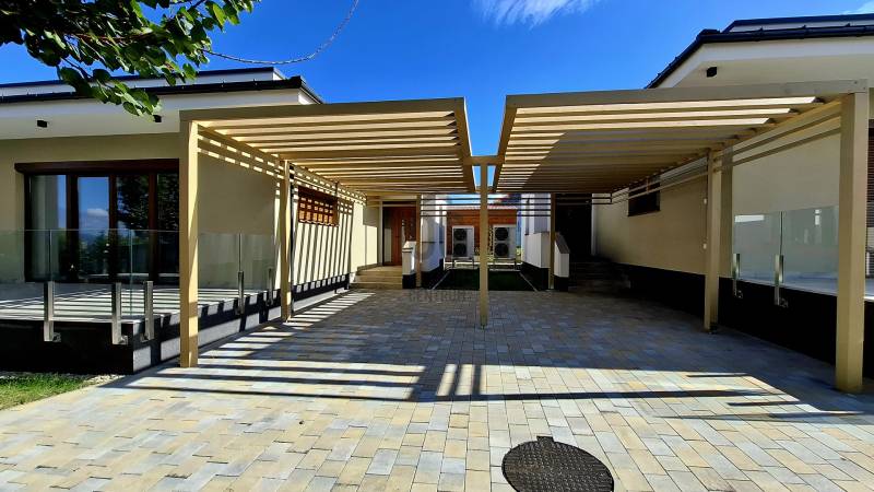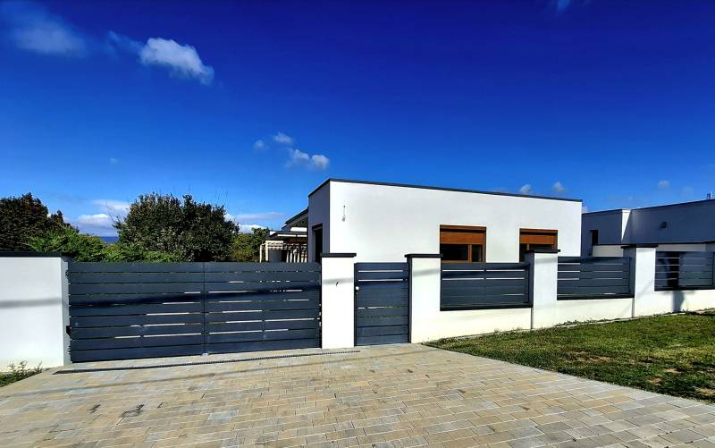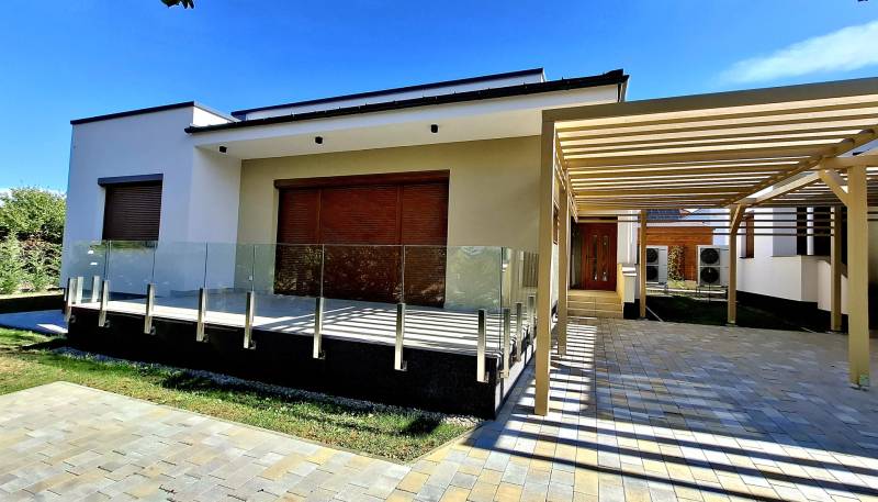 Regisztrációs szám: U0048829Örömömre szolgál, hogy KIEMELT SZERZŐDÉS KERETEIN BELÜL, ÉN írhatok neked erről a gyönyörű, ÚJ ÉPÍTÉSŰ, letisztult, exkluzív, modern stílusú, egy szintes, rendkívül jó elosztású, 96 m2-es családi fészekről!Rózsadombon a Fagyöngy utca és a Nyugati Kőhíd dűlő felől is megközelíthető az ingatlan, mely egy zöldövezetben, családi házas környezetben, egy teljesen sík, körbekerített területen fekszik! A telken, két külön önálló családi ház épült, jómagam a belsőt, az északi oldalon találhatót szeretném neked bemutatni, melynek nagyobb a területe, zártabb, intimebb udvara és kertkapcsolata van! Az ingatlan jogilag rendezett, lakhatási engedélye még nincs, de a fürdőszoba szanitereinek beépítését követően, melyet a jövőbeni tulajdonos választhat ki, (a fotókon az első ház fürdőszobája szerepel, inspirációként!) értelemszerűen, használati megállapodással, a teljes vételár kiegyenlítését követően, azonnal birtokba vehetővé válik. Az épület belső elosztásán még lehet változtatni, annak függvényében, hogy a nappali + a konyha + az étkező lehet-e egy helyiségben, mert akkor felszabadul egy 14 m2-es helyiség, amely eredményezhet egy plusz 3. külön bejáratú szobát! A fürdőszobában kialakításra kerül a kádon, vagy a zuhanyzón és a mosdón felül egy toalett is, de egy külön helyiségben is lesz még egy, a megnövekedett komfort igények miatt!Néhány fontos információ, mely segíthet eldönteni, hogy megnéznéd-e ezt a minimalista stílusú, sík tetős házat:- Az udvarba, egy távvezérlésű, elektromos kapun keresztül lehet bejutni!- 30-as porotherm, klíma tégla falazat, 15 cm-es szigeteléssel- hőszivattyús technikájú, padlófűtéses az épület- a rendszerre rá van kötve, egy 200 l-es HMV tartály, mely 4 fő részére folyamatosan biztosítja a meleg víz előállítását és tárolását- a lakóépületbe, 3 rétegű, hőszigetelt üvegezésű ablakok és hőszigetelt, szinterezett, alumínium redőnyök lettek beépítve- a beltéri ajtók jó minőségűek, igényesek, szép színvilággal rendelkeznek- a nappaliban található, nagy felületű terasz ajtó árnyékolás technikája, azaz a fém redőnye, automatikával szerelt, távirányítású módozattal működtethető- a 6,2 * 2,1 m-es, részben fedett, járólapozott, dizájn üvegkorláttal szegélyezett terasz, biztosítja a pihenést, a kávézást, de akár a szabadban történő étkezés lehetőségét is- a nappaliban egy 5 KW-os Split klíma is segíti a számunkra megfelelő hőmérséklet elérését- a házhoz, gépkocsi tárolás céljából, tartozik egy részben fedett pergola, de az épület előtt az utcán, biztonságos körülmények között még 2 autó is parkolhat- A kültéri világítás, spotlámpákkal megoldott és riasztó előkészítés is kialakításra került, valamint kaputelefonnal is felszerelt a lakóház- a teljes ingatlan kivitelezését, úgy a beépített anyagokét, mint a szaktudást illetően, a magas minőség uralja- Kiépítésre került a \"H\" tarifa is,- az épületekhez, tartozik egy 8 m3-es földalatti csapadéktároló, ami a mai világban, kincsnek számít- hangulatos, fiatalos maga a lakóépület, az udvar és a kert is********** Mivel az ingatlan ÚJ ÉPÍTÉSŰ, ezért a vételár után, 5%-os ÁFA visszaigénylésére lesz lehetősége, a jövőbeni tulajdonosnak!!! **********Ugye, hogy kihagy6atlan ??!!Ha szeretnéd látni ezt az egyedi tervezésű és kialakitású lakóingatlant, akkor valamelyik elérhetőségemen keress mihamarabb, mivel az értékesítésre váró családi házat, csak rajtam keresztül tudod megtekinteni és megvásárolni is!Köszönöm megtisztelő figyelmedet, várom hívásodat, hétfőtől, vasárnapig kereshetsz, állok szíves rendelkezésedre, a neked megfelelő időpontban!Teljes körű pénzügyi megoldások ügyintézése díjmentesen:* Bankfüggetlen hitelcenterünk díjmentesen versenyezteti minden bank és hitelintézet ajánlatát.* Önnek nincs más dolga, mint beszélgetni munkatársunkkal, majd a megversenyeztetett ajánlatokból kiválasztani a hosszútávon is a legmegfelelőbb konstrukciót.* Szakértőnk több mint 20 éves szakmai tapasztalattal és egyedi igényekre szabott, fogyasztóbarát lakáshitelekkel, babaváró hitellel, teljes körű CSOK ügyintézéssel várja Önt.* Előre egyeztetett időpontban.-