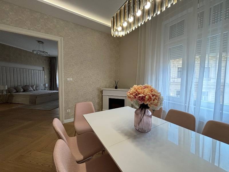 Bérleti díj tartalmazza a teljes rezsit!!KIADÁSRA KÍNÁLUNK A 6. kerületben egy 4 szobás, teljesen bútorozott ingatlant gyönyörű klasszikus épület 3. emeletén , csupán pár percre a Deák Ferenc tértől,a Szent István bazilikától illetve az Az Opera és a fenséges Andrássy is a sarkon található.A lakás a közelmúltban „modern” belsőépítészeti koncepció szerint lett felújítva, kiváló minőségű termékekkel és anyagokkal, amelyek optimálisan kihasználják a rendelkezésre álló helyet.Elrendezése:napfényes nappali,modern, teljesen felszerelt konyha étkezővel,3 hálószoba (egy gardróbbal)1 fürdőszoba káddal és WC-vel2 fürdőszoba zuhanyzóval és WC-vel.Sajátosságok:Teljesen bútorozott és felszereltA lakást professzionális, angol és német nyelvű vezetőség kezelivállalatÚj riasztórendszer, minőségi padlóburkolat, teljesen felszerelt konyhaközponti elhelyezkedéslift áll rendelkezésreBiztonságos mélygarázs a közelbenKiváló tömegközlekedési kapcsolatok (M1, M2, M3 metró, valamint több villamos ésbuszjáratok)Komplett műszaki felszereltség: mosógép szárítóval, mosogatógép, hűtőszekrény és fagyasztó,elektromos tűzhely és sütő stb.Extrák: TV, design bútorok, elektromos redőnyök távirányítóval, új fűtésrendszerrelközponti vezérlőpanel, új riasztórendszer, energiatakarékos LED világításA lakás nagy belmagasságú és nagy ablakokkal rendelkezik, amelyek tágasak és világosak légkör.Kiváló tömegközlekedési lehetőségekkel rendelkezik (M1-es, M2-es, M3-as metró, valamint számos villamos és autóbusz vonal).az épület közvetlen közelében) és a közelben egy biztonságos mélygarázs is található.Költözhető 2 havi kaucióval és az adott havi bérleti díjjal.
