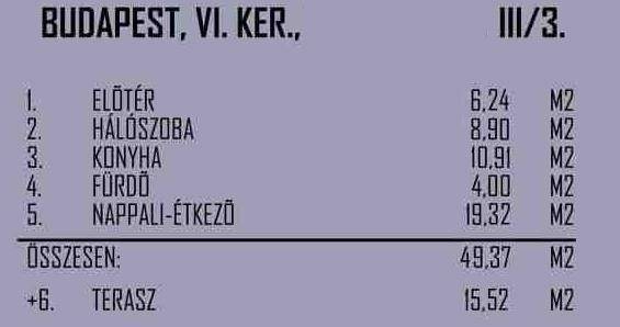 Epreskertnél az Andrássy út mellet Diplomata negyed határán zöld fakoronákkal övezett utcában valósult(2010) meg az szint és tetőtér beépítés, amellyel párhuzamosan a teljes épület megújult és két új szinten 15 új lakás és egy közel 90m2-es közös tetőkert került kialakításra Új panoráma lift került beépítésre teljes közmű és homlokzat felújítás valósult meg a lakások kialakításával párhuzamosan. Az Andrássy út és a kis földalatti karnyújtásnyira a városliget pillanatokon belül elérhető. Új építésű két szobás belvárosi ingatlan 15m2-es terasszal az Andrássy út közelében eladó.Új építésű kétszobás belvárosi ingatlan 25m2-es terasszal az Andrássy út közelében eladó. Az ingatlan a III. emeleten található A konyha és az étkező egy légtérben került kialakításra a hallban. A fürdőszobában és a konyhában a szellőzést elektromos szellőző rendszerrel oldották meg. A terasz a nappaliból megközelíthető a szobák külön bejáratúak. A lakás alapterülete 49,37m2 a terasz pedig 15,52m2. A fekvéséből adódóan délutáni benapozás várható. A LAKÁ HOSSZÚTÁVRA BÉRBE VAN ADVA!!!