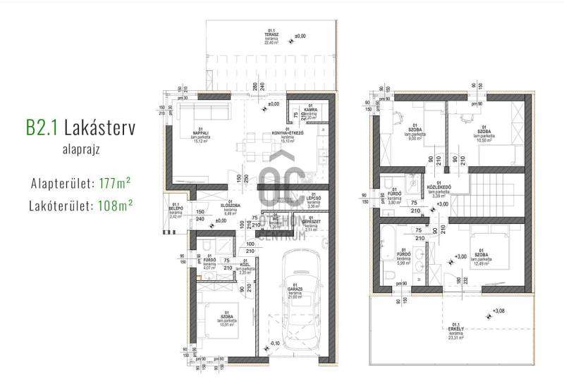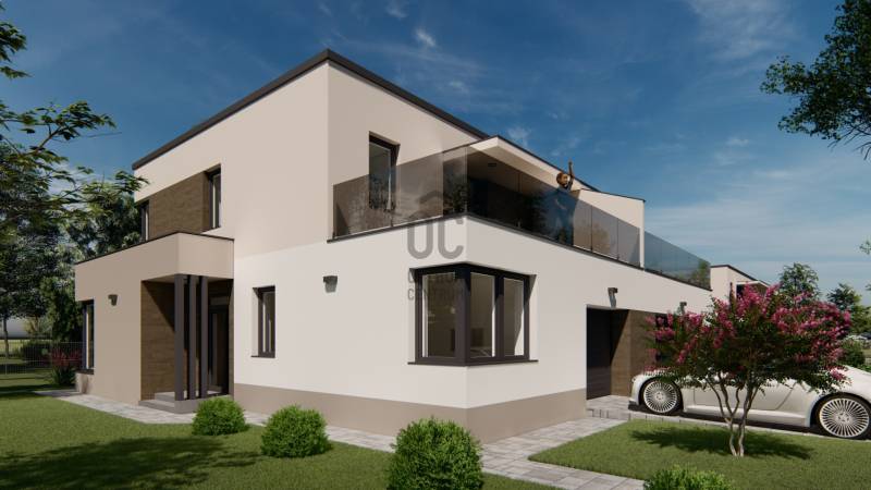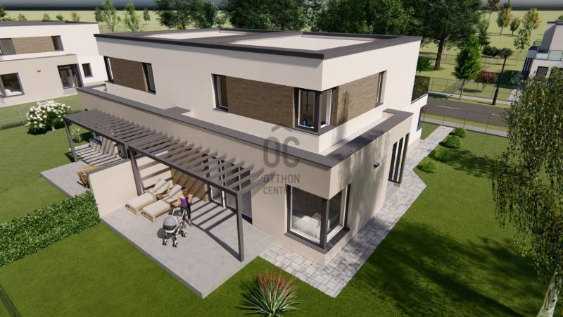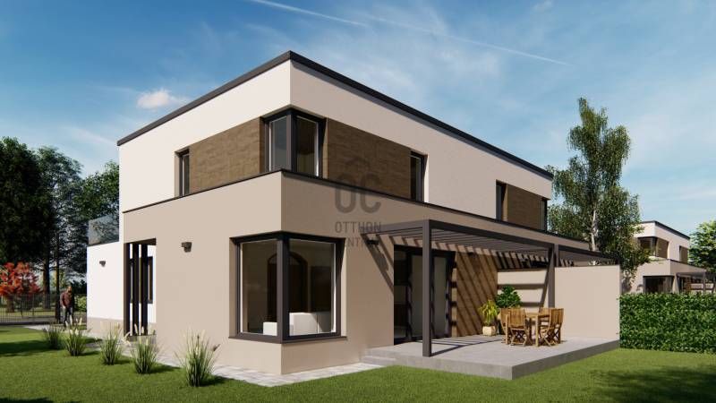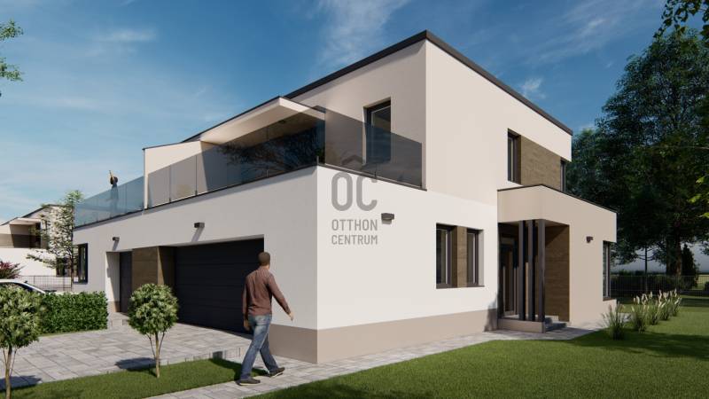 Képzeljen el egy otthont, ahol a modern építészet és a természet harmóniája találkozik. Debrecen-Józsa legújabb lakóparkja különlegessége, hogy a terület korábban botanikus kertként működött, ennek varázslatos hangulata ma is átjárja a környéket. A gazdag növényzet és a gondosan parkosított környezet biztosítja a természet közelségét és a mindennapok nyugalmát.A lakópark csendes utcáiban a gyerekek biztonságosan játszhatnak, biciklizhetnek, miközben a család a zöld környezet nyugalmát élvezheti.Alapterület: 177 m²Lakótér: 108 m²Szintek: földszint + emeletSzobák száma: 4 + nappaliGarázs: 1 autós, közvetlen belső kapcsolattalTelekrész: saját használatú 450 nmElrendezésA modern, lapostetős ikerház átgondolt alaprajzzal rendelkezik:Földszint: világos nappali étkező-konyhával és kamrával, egy hálószoba, fürdőszoba, külön WC, háztartási helyiség, előszoba, egygépkocsis garázs, valamint 22,4 m²-es terasz.Emelet: három hálószoba, két fürdőszoba, közlekedő, és 23,3 m²-es erkély.Műszaki tartalom (kiemelt jellemzők)Szerkezet: Porotherm 30 N+F tégla, 15–20 cm hőszigetelésselTetőszerkezet: lapostető, egyenes rétegrenddel, kavicsolt felülettelNyílászárók: 6 légkamrás, 3 rétegű üvegezéssel (Uw=0,9 W/m²K), kívül antracit, belül fehérÁrnyékolás: motoros redőny előkészítésGarázskapu: motoros, hőszigetelt szekcionált kapu, 2 távirányítóvalBurkolatok: laminált padló 7.500 Ft/m²-ig, kerámia 10.000 Ft/m²-ig választhatóFürdőszoba felszereltség: Hansgrohe csaptelepek, Wellis szaniterek, Macryl Eco kád, Ravak zuhanyfalFűtés-hűtés: levegő-víz hőszivattyú, padlófűtés + mennyezethűtés, nappaliban klímaSzellőzés: hővisszanyerős szellőztető rendszerBiztonság: komplett riasztórendszer előkészítveExtrákKörbekerített lakópark, úszókapuval, kizárólag lakók részéreBiztonságos magánutca, ahol a gyerekek felszabadultan játszhatnakTágas terasz és erkély, ideális családi és baráti összejövetelekhezÚj építésű, energiatakarékos otthon modern gépészettelEgyedülálló zöld környezet a volt botanikus kert helyénHa Ön is egy modern, energiatakarékos otthonra vágyik a természet ölelésében, biztonságos, családbarát környezetben, ne habozzon!Hívjon most, és biztosítsa be helyét a Green Living Lakópark különleges otthonai között._ MAGASTETŐS KIVITELBEN IS VÁLASZTHATÓ: 186.970 HUF. _