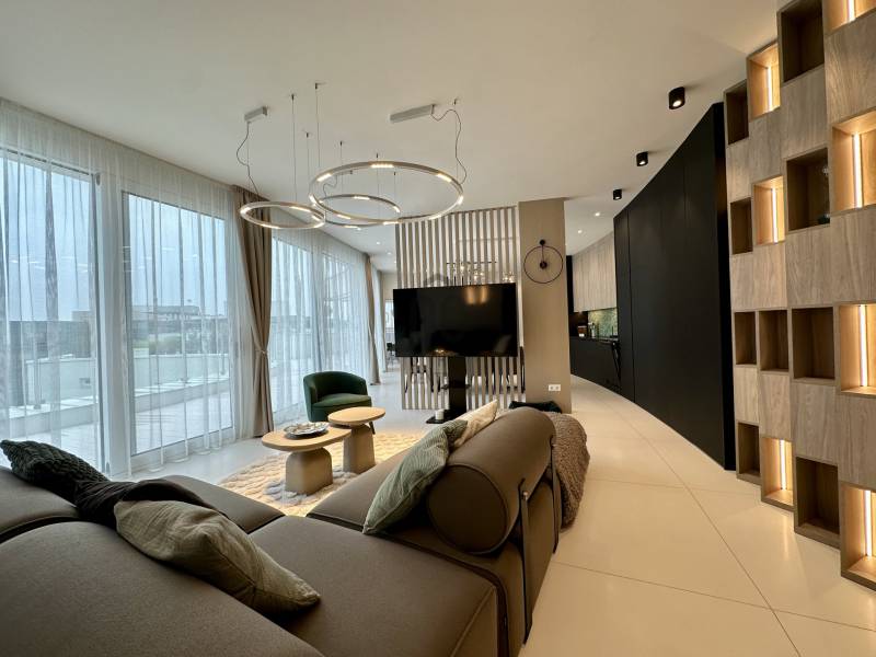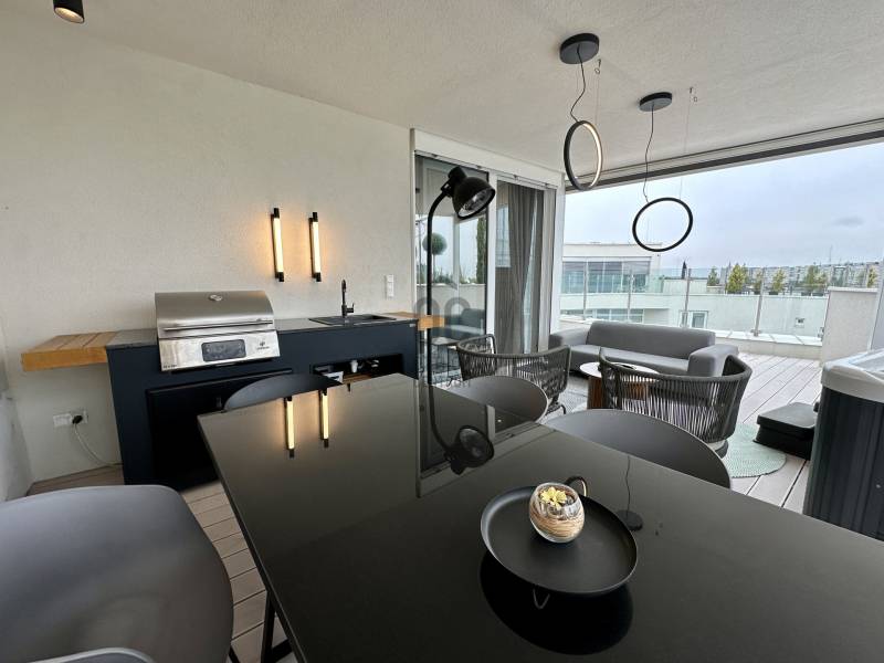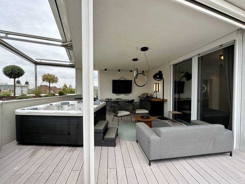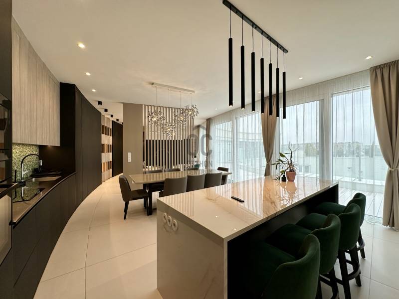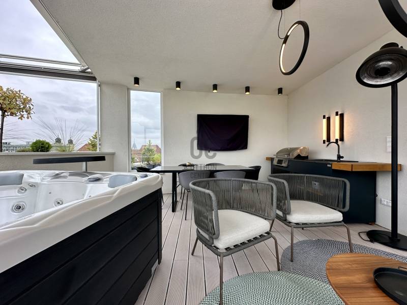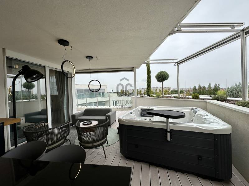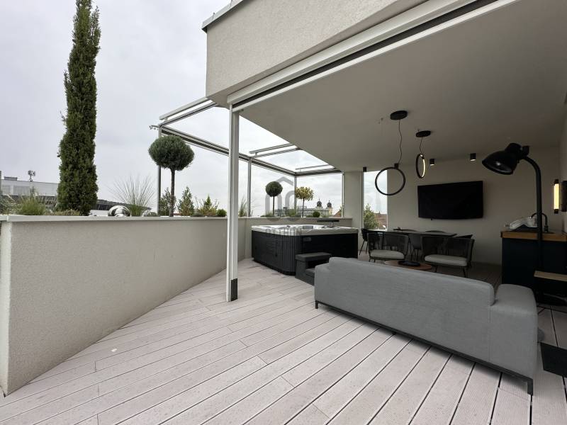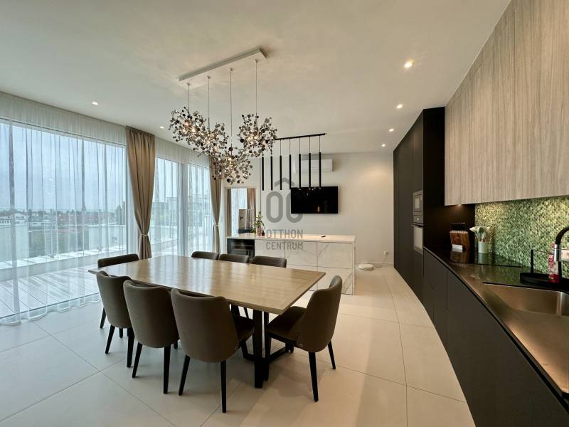*** Kiváló állapotú, prémium kivitelezésű PENTHOUSE lakást kínálunk eladásra Debrecen belvárosában ***Az ingatlan területe 141 nm, 2 hálószobával és 3 fürdőszobával rendelkezik, valamint egy 85 nm-es terasszal is büszkélkedhet, ahonnan csodás panoráma nyílik a városra két irányba is. Az ingatlan modern és világos, nagy belmagasságú, exkluzív érzetet keltő, amit az amerikai konyha és a tágas nappali csak tovább fokoz. Az ingatlanba beépített bútorok és szekrények, valamint a motoros redőnyök is biztosítják a kényelmes életet.A lakásban található szauna és jakuzzi a pihenésről gondoskodnak. A mennyezethűtés és a hőszivattyús fűtés pedig a megfelelő hőmérsékletet biztosítják az egész lakásban. Az ingatlan a belvárosban található, így a környék ellátottsága kiváló, a közlekedés pedig kitűnő. A közelben számos bolt, étterem, kávézó és szórakozóhely található, így az élet minden területén könnyen megtalálható a megfelelő szolgáltatás. Az ingatlan könnyen megközelíthető, a tömegközlekedési lehetőségek pedig kiválóak. A közelben található buszmegállók és villamosmegállók, így akár autó nélkül is könnyen elérhető a város bármely pontja. Az lakás tetőteraszán fedett árnyékos pihenő található ahol hatalmas JACUZZI, ultramodern GRILLEZŐKONYHA, óriás led TV és pihenősarok kapott helyet, amely a nyári estéken kellemes időtöltést biztosít. Az ingatlan FRISSEN FELÚJÍTOTT, AZONNAL KÖLTÖZHETŐ. 2 db mélygarázs parkoló tartozik hozzá, mely külön megvásárolható.Ha bármilyen kérdése van az ingatlannal kapcsolatban, keressen minket bizalommal! Hívjon, hogy mihamarabb megnézhessük ezt kivételest penthouse lakást!belváros, luxuslakás, penthouse, 3 szoba, 2 hálószoba, tetőterasz