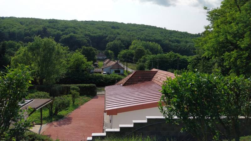 SZOMSZÉDMENTES, MINDEN KÖZMŰVEL ELLÁTOTT!ZALASZENTGRÓT EGYIK FESTŐI, ERDŐS DOMBOK KÖZT MEGBÚJÓ KICSI VÁROSRÉSZÉBEN, CSÁFORDON KÍNÁLUNK EGY FRISSEN MEGÚJULT CSALÁDI HÁZAT TELJES KÖZMŰELLÁTÁSSAL. EGYEDÜL IRODÁNKNÁL ELÉRHETŐ !Az ingatlan kivételes elhelyezkedésű. Egy kiváló infrastruktúrával rendelkező járási székhely szatellit falujában, annak is különálló, háborítatlanul békés részében található, csupán szembeni, nem közeli szomszéddal. Belterületi, lakóház, gazdasági épület és udvarként nyilvántartott. Vezetékes víz, csatorna, villany, gáz rendelkezésre áll. Aszfaltút vezet a házig, ahonnan már a hegyekbe induló földút kezdődik. Mégis szoros köldökzsinór köti össze a néhány kilométerre lévő várossal, hiszen a buszmegálló karnyújtásnyira van .A bájos lankára nyújtózó, 3605 m2-es bekerített telek szinte szabályos négyzet alakú, 62 méter utcafronti széllességgel, két bejárattal. Az épület egy régi, 50 cm vastag falú vályogház könnyű szerkezetes bővítésével, szakszerű, gondos kivitelezéssel esett át a metamorfózison. Néhány műszaki jellemző. - A tetőn szükség szerint gerendákat cseréltek, szigetelt beton födém került a padlásra. - Nedvesség - és hőszigetelő aljzat készült.- Új villamos vezetékek, villanyóra a 3 x 32 Amper nappali és 1 x 32 Amper éjszakai áramellátáshoz. - Kicserélték a víz- és szennyvíz csövezést házon belül és kívül.- Mindenütt műanyag nyílászárók, kerámia járólapok.- Villanyárammal táplált padlófűtés. Villanybojler.- Elektromosan működtethető motoros redőnyök, garázsajtó. A kapuhoz szintén kiépítve az áramellátás.- 4/6 személy lakhatásához elegendő kapacitású vízlágyító rendszer. - Gáz a főzéshez bevezetésre került.- Megfigyelő kamerák.- Alap konyhabútor rendelkezésre áll.A telken garázs, mellette tároló. A kút jelenleg csak dekoráció.A lakóház beosztása: Közlekedő, melyből a három ajtóval kertkapcsolatos nappali, a zuhannyal és káddal felszerelt fürdő, és egy étkező helyiség nyílik. Ebből egy szoba és a konyha érhető el, utóbbi mögött háztartási helyiség. Ha igényes, modern körülmények közt, de egészséges környezetben, a települések, közutak zajától távol kíván letelepedni, nyugalomra, elvonulásra vágyik, mégsem szeretne távol lenni a város nyújtotta kényelmi infrastruktúráktól, megtalálta álmai otthonát. Hévíz és a Keszthely alig 25 / 30 perc autóút, a zalaszentgróti és kehidakustányi élményfürdők kerékpárral is elérhetők. Zalacsány 15 km, ahol golfpálya, két kastélyszálló, horgásztó várja a kikapcsolódni vágyókat.További információért, megtekintéshez, kérem, hívjon / írjon a megadott elérhetőségen.