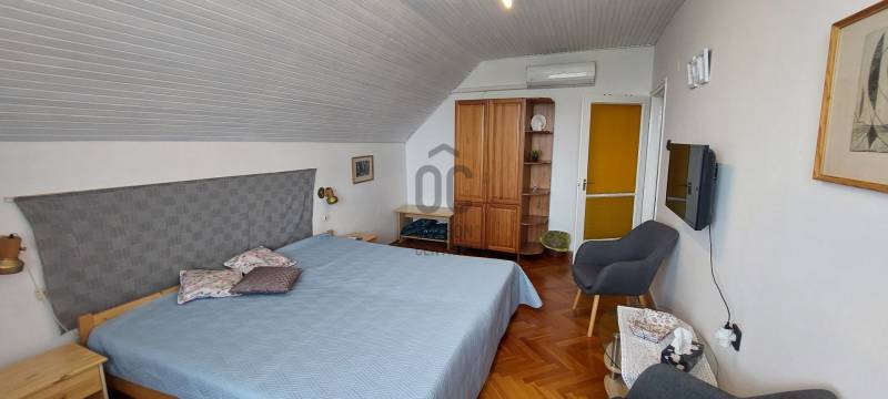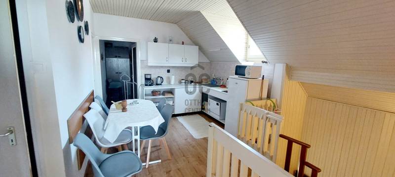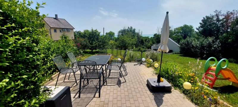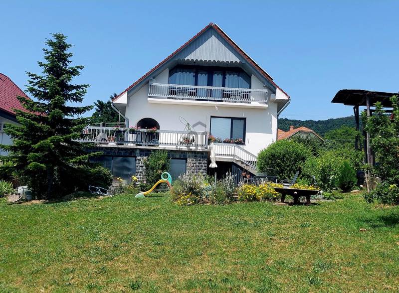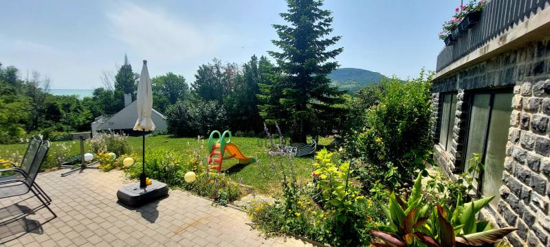 Eladásra kínáljuk Badacsonytomaj – Badacsonyörs területén egy kiváló adottságokkal rendelkező panorámás családi házat, mely több generációs családi háznak, nagyobb nyaralónak de akár szálláshely szolgáltatásnak is tökéletes választás.Az ingatlan alapterülete 100 nm, mely három szinten – szuterénszint, lakószint és tetőtér – több mint 250 nm hasznos térrel rendelkezik.A bazaltkővel kirakott alsószinten egy kocsibeálló, kazánház, borospince valamint egy nyárikonyha étkezővel található. A helyiségek funkciója igény szerint módosítható.A lakó szinten található helyiségek: szoba, konyha külön étkezővel fürdőszoba külön Wc-vel hatalmas nappali cserépkályhával. Az épütet körülöleli a panoráma terasz, valamint a boltíves nyitott veranda terasszal, mely helyekről a Balaton vagy a Badacsony-hegy tárul elénk. A nagyméretű hőszigetelt panoráma nyílászáróknak köszönhetően ezen szint fényárban úszik. A ház központi részét a tágas nappali és étkező uralja. A tetőtérben amerikai konyha, fürdőszoba, külön Wc és négy szoba található. Két szobából a Balatonra – Badacsony-hegyre panorámás erkélyre jutunk. A tetőtér hűtéséről a felszerelt klímák gondoskodnak. A ház energiaigénye alacsony, az északi falak 15 cm, a többi oldal 10 cm szigetelést kapott. A ház fűtése tekintetében több megoldás közül is választhatunk, melyek: - az elektromos kazán-központi vegyes tüzelésű kazán- a nappaliban található cserépkályha Megújuló energiát a felszerelt 5 KW-os napelemrendszer adja, mely igény szerint tovább bővíthető. Az elektromos hálózat is felújított. Az ingatlanhoz tartozó telek mérete 1210 nm, mely részben térkövezett, részben parkosított. A házhoz vezető kapu elektromosan nyitható.A hirdetett ingatlan ideális választás családi háznak, két generációs épületnek, hiszen együtt de mégis külön térrel rendelkezik, vagy vendégházként üzemeltetve jövedelmező befektetés.Ha közel a Balatonhoz, szép környezetben szeretne élni, úgy nézze meg a hirdetett ingatlant. A településen falusi CSOK igénybe vehető. A legközelebbi strand 500 méteren belül van.Amennyiben minőségi balatoni örökpanorámás családi házat – nyaralót keres, úgy hívjon bizalommal!