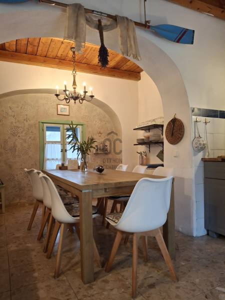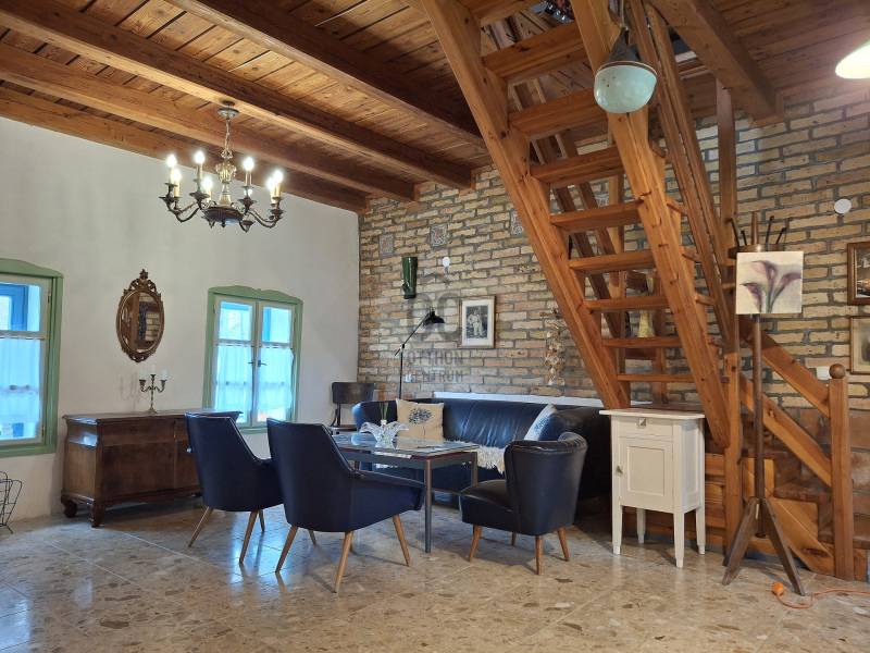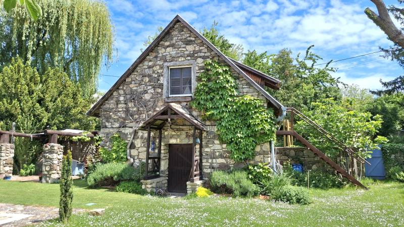 A Káli- medence varázslatos kis zsákfalujában, Balatonhenyén ajánlom figyelmébe ezt a régi értékekeket megőrző, de a mai kor igényei szerint felújított ingatlant.A főépület mellett egy kis házikó is áll a telken, melyből külön lakrész alakítható ki.A kőből épült épült főépület új, vörösfenyő födémet és gerendázatot kapott.Az új födémnek köszönhetően, a környéken ritka 2,85 m-es a belmagasság.A felújítás során kétrétegű nyílászárók kerültek beépítésre. A fűtést az alsó szinten kondenzációs gázkazán, a tetőtérben elektromos panelek biztosítják.A netttó 110 m2 alapterületű alsó szint az előszobából és a teraszról is rendelkezik bejárattal.A két hálószoba, nappali, konyha- étkező mellett kettő fürdőszoba került kialakításra.A tetőtérben egy nagy légterű társalgót találunk két leválasztható hálóhellyel.Jelenleg még nem került beépítésre 40 m2, de kis ráfordítással és egy kinti lépcső beépítésével teljes értékű lakrész válhat belőle.A ház lenyűgöző és otthonos hangulata a család gondos és minden részletre odafigyelő munkájának köszönhető.A bútorok és a berendezési tárgyak visszarepítenek minket a múltba, ezek külön megállapodás tárgyát képezik.LAKÓHÁZKÉNT, NYARALÓNAK DE AKÁR VENDÉGHÁZNAK IS HASZNOSÍTHATÓ!Jelenleg szállásadó helyként működik, melynek további üzemeltetésében a tulajdonos szívesen rendelkezésére áll az új gazdának.A kert könnyen karban tartható, kőbástyával övezett.Szépen parkosított, két terasz, grillező és egy kerti zuhany biztosítja a kinti pihenést.Az átalakításhoz előkészített kisház ( víz, áram, csatorna ) jelenleg tárolóként hasznosul.Alsó szintjén egy 20 m2- es boltíves pincét találunk, rossz időben itt is fogadhatjuk vendégeinket.Kivételes ingatlan ahova azonnal beköltözhetünk és nagyobb család esetén is mindenki jól fogja érezni magát!A Balatontól mindössze 8 km- re fekvő gazdag népi építészeti örökséggel büszkélkedő faluból remek túrákat tehetünk a Fekete- hegyre vagy a monoszlói Hegyestű felé.Az utcákon haladva elragadó kép tárul elénk, megszámlálhatatlan egyedi tájérték, épületrészlet, kút ragadja meg a figyelmünket.Ha kérdése merülne fel az ingatlannal kapcsolatban vagy szeretné megtekinteni, várom megtisztelő hívását!