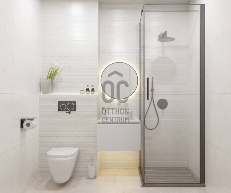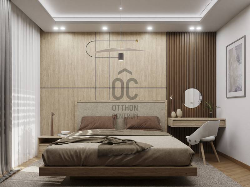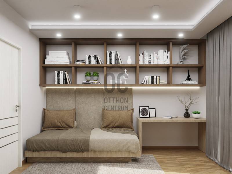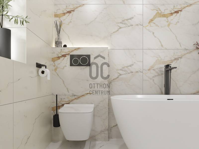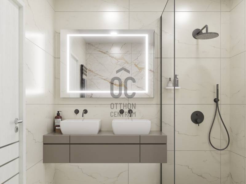 Aranyhegy egyik legszebb részén, a csendes Almáskert utcában kínálunk eladásra egy vadonatúj, panorámás, luxus színvonalú ikerházat.Az ingatlan 121,85 m²-es, két szinten elosztva, összesen 5 szobával és három terasszal rendelkezik. A tágas és világos tereket a délnyugati tájolás és a Hármashatár-hegyre nyíló kilátás teszi igazán különlegessé.Főbb jellemzők:Alapterület: 121,85 m² (Földszint: 71,45 m² + Emelet: 50,40 m²)Helyiségek száma: 5 szoba, 2 fürdőszoba, amerikai konyhás nappali, előszobaTeraszok: 3 db (összesen több mint 40 m²)Kilátás: Panorámás, zöldövezetiKomfort fokozat: LuxusFűtés: Modern levegő-víz hőszivattyús rendszer padlófűtéssel és fan-coil hűtésselFontosabb műszaki adatok:Szerkezet: Porotherm X-therm falazat, monolit vasbeton födémek, 15 cm hőszigetelésTető: Lapos tető, modern víz- és hőszigeteléssel (Bauder rendszer)Nyílászárók: Háromrétegű, hőszigetelt műanyag ablakok (Ug=0,5 W/m²K), motoros alumínium redőnyökBurkolatok: Prémium greslapok, laminált parketta vagy vinyl padlóFürdők: Magas minőségű szaniterek, vízzáró szigetelésKert: Parkosított kert, térkövezett autóbeállóEnergiahatékonyság: Hőszivattyús fűtés, napelem előkészítésEz az otthon ideális választás mindazoknak, akik értékelik a csendes, zöld környezetet, ugyanakkor fontos számukra a modern, energiatakarékos műszaki tartalom és a magas minőség.Egyéb:A ház körül teljes szivárgó („drén”) rendszer kerül kiépítésre.A csapadékvíz tárolására szolgáló zárt tartály kerül beépítésre.Opció: locsoló rendszerrel történő integrációval.vételár nem tartalmazza:- beépített szekrények, konyhabútor és azok beszerelési költségét- világító testek, lámpák és azok beszerelési költségét- beépített háztartási gépeketA környék ideális a pihenésre, feltöltődésre. A zöld, frisslevegős, madárcsicsergős környezetnek köszönhetően magas minőségű életmódot élhetünk. Pár perc sétatávolságra található vonat és buszmegálló.