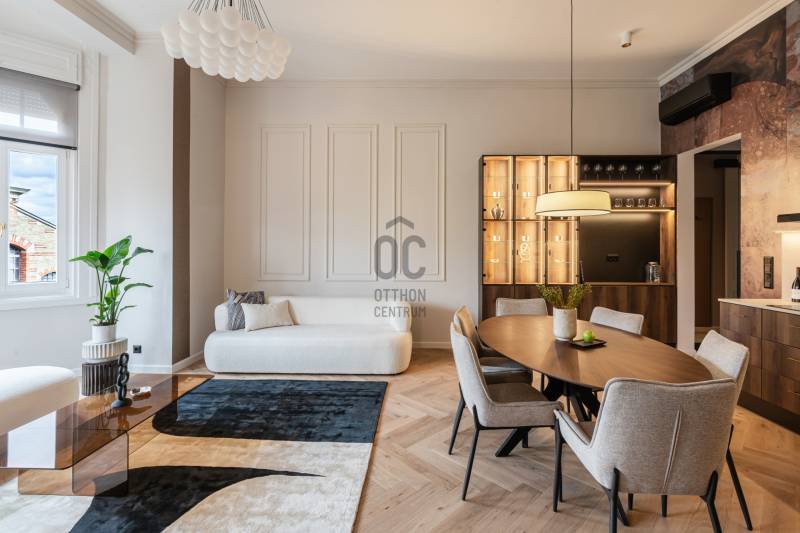A Batthyány tér közelében, a Markovits utcában, szép épületben, a DUNA-PARTTÓL néhány lépésre található ez a 87 négyzetméteres, 3 szobás, 2 fürdőszobás, teljes körűen felújított és magas színvonalon berendezett otthon.A lakás 2. emeleti elhelyezkedésének köszönhetően rendkívül világos, és több irányból is gyönyörű PANORÁMÁT kínál – az egyik oldalról a PARLAMENT, a másikról a HALÁSZBÁSTYA látványa tárul elénk. A lakberendező által megtervezett tér harmóniája, a természetes anyaghasználat és a modern technológia elegáns egységet alkotnak.A tágas amerikai konyhás nappali központi élettérként szolgál, amelyet egyedi gyártású bútorok, tölgyfa parketta és bioetanol kandalló tesz különlegessé. A nyílászárók prémium minőségű borovi fenyőből készültek, ELEKTROMOS REDŐNYÖKKEL és korszerű hőszigeteléssel.A lakás 2 különálló hálószobával rendelkezik, amelyek mindegyike csendes, kényelmes és jól szeparált. A két fürdőszoba eltérő hangulatú: az egyik modern, üvegfallal elválasztott tusolóval, a másik exkluzív, szabadon álló káddal készült.A konyha Bosch gépekkel felszerelt, a fűtésről padlófűtés és kombi gázkazán gondoskodik, a hűtést minden helyiségben külön szabályozható klíma biztosítja. Az ingatlan teljes berendezéssel és dekorációval együtt kerül értékesítésre, így az új tulajdonos azonnal birtokba veheti.A társasház jó állapotú, folyamatosan karbantartott, kulturált lakóközösséggel és rendezett közös terekkel. A környék hangulatos kávézói, éttermei és a közeli Duna-part egyaránt hozzájárulnak ahhoz az életérzéshez, amelyet ez az otthon képvisel: a klasszikus budai elegancia és a modern luxus kifinomult találkozása.Egyedi igényekre szabott lakáshitelekkel állunk rendelkezésére.Bankfüggetlen Hitelcentrumunk az országban elérhető összes bank és hitelintézet ajánlatát versenyezteti az Ön számára díjmentesen.Munkatársaink nagy szakmai tapasztalattal, teljes körű CSOK PLUSZ és OTTHON START PROGRAM ügyintézéssel várják Önt előre egyeztetett időpontban akár a normál munkaidő után is.