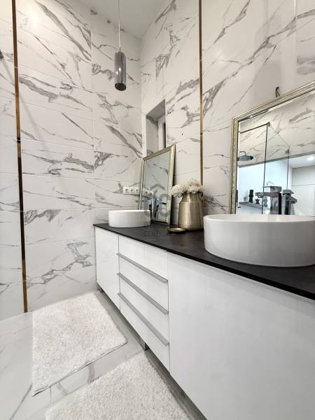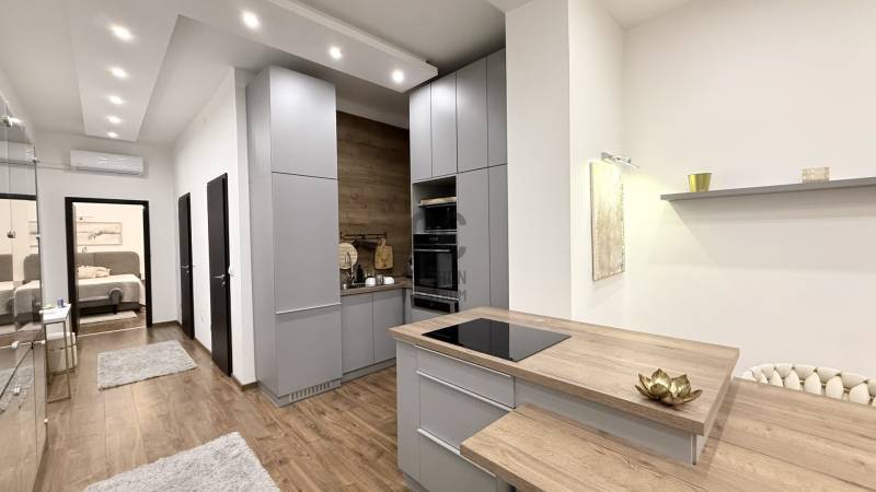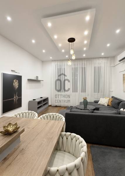 Luxus szinten felújított lakás a XIII. kerületben – Lehel utcaEladó egy 69 m²-es, teljeskörűen prémium minőségben felújított lakás a Lehel utcában.A tágas, DK-i tájolású nappali gyönyörű LED-es álmennyezettel, modern konyhával és elegáns dekorral várja új tulajdonosát.Teljes körűen felújított, magas minőségű anyagokkal és bútorokkal felszerelt, csendes és világos, 2 szobás lakás. A modern, skandináv–luxus hangulatú otthon tökéletes választás akár pároknak, akár egyedülállóknak, de befektetésnek is kimagasló – azonnal kiadható állapotban van. A háló és a nappali és a közlekedő is hűtő-fűtő klímával felszerelt, télen elegendően melegít, nyáron elegendően hűt. Igény szerint fűtő panelek felszerelhetőek, de eddig nem volt rá igény. H-tarifa igényelhető , így fűtése kedvező lehet . Télen eddig (20-30 ezer forint volt maximum) ✨ Főbb jellemzőkAlapterület:69 m² Helyiségek: nappali-konyha-étkező, hálószoba, fürdőszoba, külön WC -kézmosó, gardrób, előszobaÁllapot: nemrégiben felújítottKözös költség: 32.000 FtNyílászárók: műanyag, jó állapotbanFűtés: elektromos (hűtő-fűtő klíma )-Nappali – a lakás szíveA tágas, elegáns nappali modern szürke sarokkanapéval, hangulatvilágítással és nagyméretű ablakokkal rendelkezik. -Modern prémium konyhaA konyha teljesen új, beépített gépekkel (sütő, mikrohullámú, indukciós főzőlap, tárolófal).Letisztult szürke frontok, fa hatású hátfal és rengeteg pakolóhely teszi igazán praktikussá.A konyha–étkező rész egy elegáns pulttal egészül ki, különleges fonott bárszékekkel.-Fürdő és külön WCA lakás különlegessége a szabadon álló designkád, a walk-in zuhany.-Gardrób – álom tárolóhelyiségA hatalmas, beépített gardróbszoba minden nő álma:rengeteg polc, akasztórúd, felső szekrények és egy külön mosókonyharész került kialakításra.-HálószobaCsendes, udvarra néző, letisztult stílusú, tökéletes pihenőhely.Elhelyezkedés és környékA környék csendes, rendezett, jó infrastruktúrával, gyors közlekedéssel.Minden fontos szolgáltatás pár percre elérhető.Tökéletes választás igényes vevőknek vagy befektetőknek – azonnal kiadható, magas hozammal.