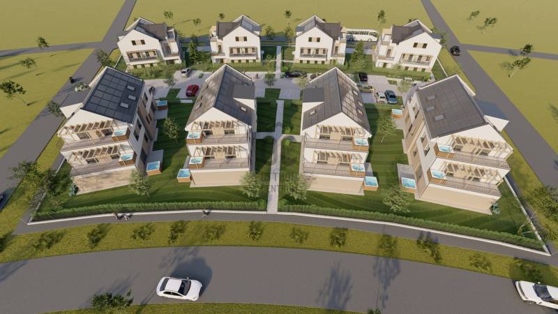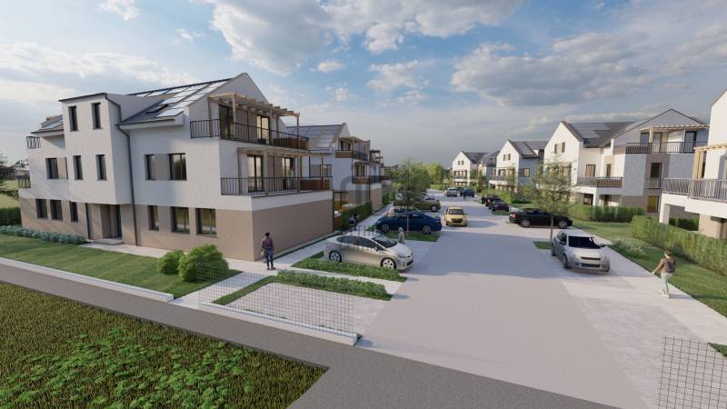 Projekt bemutatásaÚj lakások – Harmónia LigetCsendes, közel nulla energiaigényű, hatlakásos társasházi lakások kertvárosi környezetben. Válaszd ki új családi fészked CSOK-támogatással, és ébredj reggelente mosolyogva az új otthonodban.A nyugalom szigete – Harmónia LigetCsendes, közel nulla energiaigényű hatlakásos társasházi lakások kertvárosi környezetben.Válaszd ki új családi fészked CSOK-támogatással, és ébredj reggelente mosolyogva az új otthonodban.Biztonságos és otthonos lakóparkHatlakásos kis társasházak biztonságos, zárt lakóparkbanKertkapcsolatos vagy nagyméretű teraszos lakásokKözel nulla energiaigényű otthonok saját hőszivattyús, egyedi hűtés–fűtéssel és hálózat-visszatáplálásos napelemes rendszerrelSaját jacuzzi és szauna lehetősége minden lakáshozParkosított környezet, zárt gépkocsibeálló és e-autó-töltési lehetőségBudapest utolsó kertvárosi fejlesztéseinek egyikeBölcsőde, óvoda, általános iskola és gimnázium helybenBevásárlóközpont, korszerű kórház és orvosi rendelő a közelbenSoroksár legszebb részén, a Szentlőrinc Golfklub mellett, a beruházás során 8 lakóépület valósul meg, melyek 2023 végén illetve 2024 elején kerülnek átadásra.Az ingatlan a XXIII. kerület Szentlőrinci telepén található, határolja:Szent László utca – Homokliliom utca – Víziboglárka utca – Sisakvirág utca.A 2021-ben megváltozott energetikai előírásoknak minden épületszerkezet és energetikai paraméter megfelel.Az épületek az új EU „közel nulla” energetikai előírásainak megfelelő, emelt műszaki tartalommal készülnek.A telken a megközelítést egy hosszanti és egy keresztirányú feltáróút biztosítja. Az utak térburkolatot kapnak, itt található a gyalogosközlekedés és a lakásokhoz tartozó parkolás.A tetőkre napelemek kerülnek.A terület körbekerített, személyi és gépjárműkapuval, előregyártott acélszerkezetű kivitelben. A kapuk mellett kukatárolók és előírt kerékpártárolók létesülnek.Tervezett épület ismertetéseA lakóépületek alápincézetlen, földszint + emelet + tetőtér kialakításúak. Minden épület külön fogyasztásmérőkkel rendelkezik. A villanyórák az osztatlan közös tulajdonú kerítés melletti kukatárolók falába kerülnek. A vízórák a kerítés mellett kialakított aknában kapnak helyet. A gépkocsi-behajtás távirányítású kapun keresztül történik, a személyi bejárat külön kaput kap.