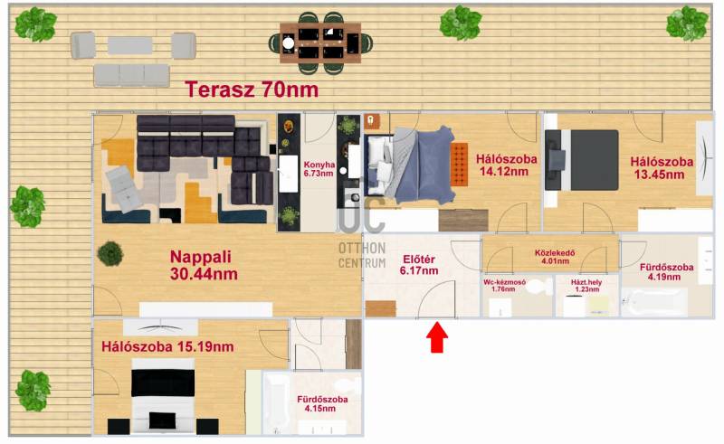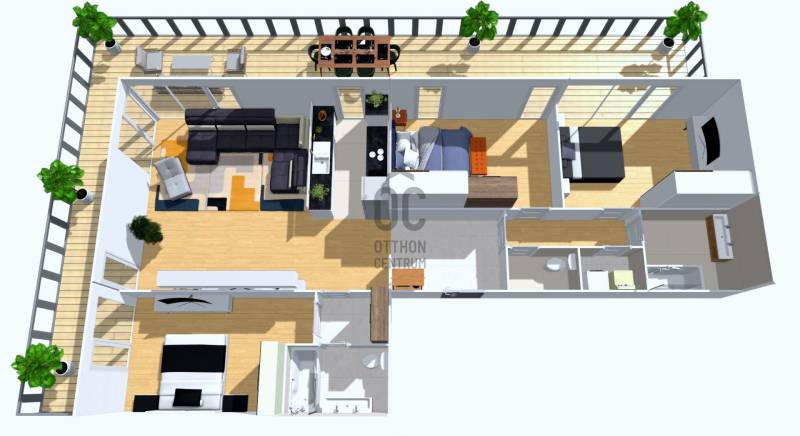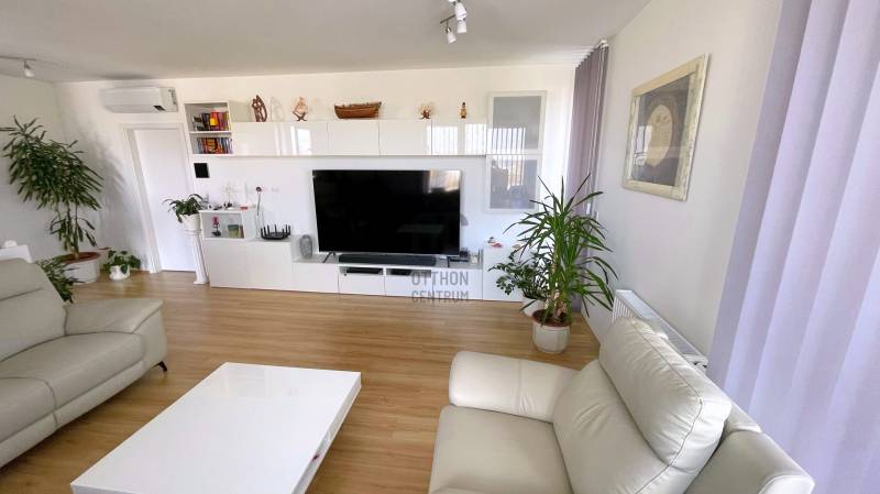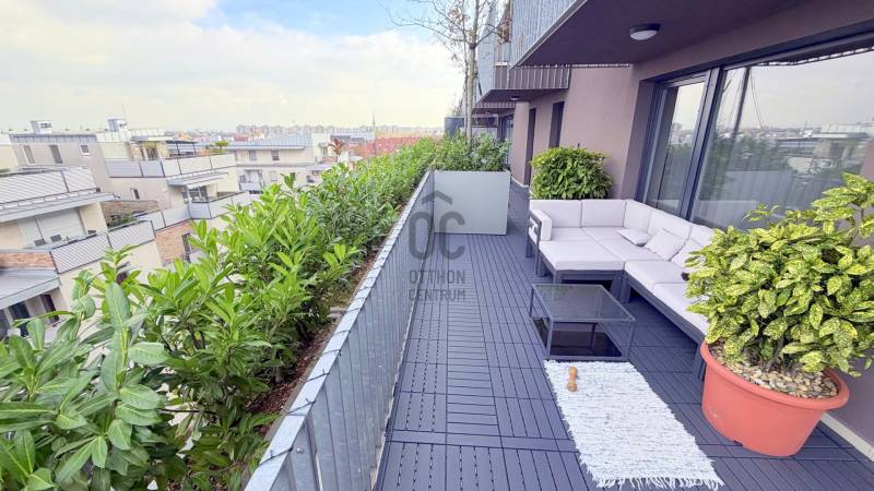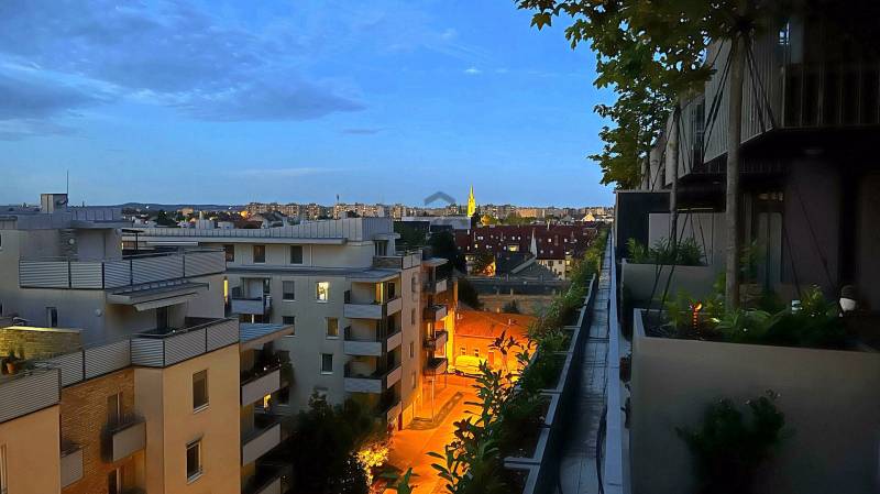 Eladóvá vált a méltán híres és kedvelt luxus Metrodom Panoráma lakóparkban egy 4 szobás újszerű állapotú lakás hatalmas terasszal!Kiváló elosztás, magas minőség és budai panoráma jellemzi ezt a remek 104nm + 70nm terasszal rendelkező 6. emeleti lakást.Hogy miért pont ezt válaszd?+ Több díjat nyert, 2020-ban átadott társasház, amit luxus kivitelben építettek meg és rengeteg extrával felszereltek. 2+2 db személy és teherlift, porta szolgálat, közösségi szobák és parkos környezet fogadja a lakókat. + A fűtés házközponti egyedi mérővel lakásonként, de a kiváló szigetelésnek köszönhetően télen is csak nagyon minimális fűtésre van szükség (havonta max. 5-7000.- FT). Az energiatakarékos LED lámpáknak és a prémium háztartási gépeknek köszönhetően az áram számla is elenyésző. A közös költségben benne van a 0-24-es portaszolgálat, az épület és garázstakarítás, a függőkertek és a park gondozása, illetve a lakópark általános rendben tartása is.+ Rendkívül jó a lokáció, mivel a 4. és 13. kerület határán található és 10 perc alatt elérhető a belváros. A lakóparkhoz tartozik egy pihenőparkos modern játszótér a gyermekesek örömére.+ Bevásárlási lehetőségek, éttermek, fagyizó, vegyesbolt, gyógyszertár, pékség, kávézó és még számtalan hely ami pár perc sétára elérhető a háztól.+ A tömeg közlekedés is kiváló, mivel Újpest városkapu metró megálló 6 perc sétára található, továbbá számos busz járat a háztól 300 méterre található (104,104A,147,196,204, és éjszakai 950,950A buszok).+ A lakás 3 jó méretű hálószobával, 2 fürdőszobával és még egy vendég mosdóval is rendelkezik. + A tágas amerikai konyhás nappali rendkívül világos és mint minden szoba, ez is terasz kapcsolatos.+ A kilátás a 3. kerület budai hegyeire, illetve Szentendre - Vác - Gödöllői dombság irányában teljesen zavartalan és lehengerlő látványt nyújt.+ Mivel remek északi fekvésű, így akár napkeltéről akár naplementéről legyen szó, bármelyik megcsodálhatod minden nap.+ Mivel eddig nem volt lakva, így teljesen újszerű állapotban van. Frissen lett festve és a teljes terasz frissen lett újra burkolva. + A kényelmet fokozza az egész lakásban kialakított okos otthon rendszer, ami világítástól kezdve, a fűtésen át az elektromos redőnyig mindent kezel. Természetesen minden termék és energiahatékony kivitelezésű.+ A tulajdonos az ingatlannal együtt kívánja értékesíteni a hozzá a jelenleg használt mélygarázs beállót, ami a szokásosnál jóval nagyobb, közel 30nm területet jelent, ahol bármekkora autó elfér és még tárolásra is marad hely, melynek külön ára 12M Ft.+ Az ingatlan tehermentes, 1/1-es tulajdonú társasházi lakás, hitelre is megvehető. Mivel a továbbadás oka egy másik még épülés alatt lévő lakás megvásárlása, ezért a birtokba adás a szokásosnál hosszabb.Ha nyugodt környékre vágysz luxus és kiemelt környezetben egy olyan egyedi és remek állapotú lakásban, amihez egy egyedi nagysági terasz is tartozik gyönyörű kilátással, akkor gyere el és szeress bele te is!