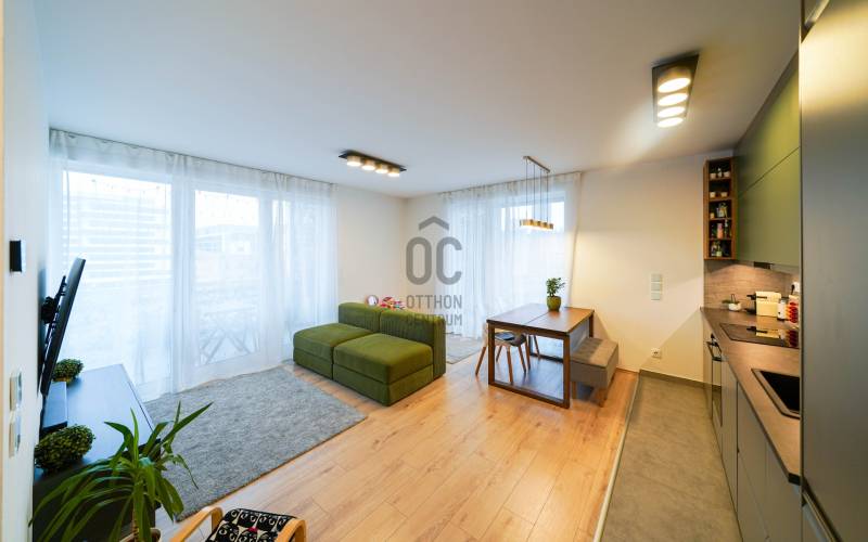 Millenniumi Városrészben a Metrodom GREEN 2025-ben átadott épületében, Ferencváros egyik legkülönlegesebb, legkarakteresebb, zöld lakóparkjában az 5. emeleten kínálok megvételre egy napfényes, délnyugati tájolású, remek elrendezésű, nettó 58nm-es otthont, amelynek egyedi 28 nm-es sarok terasza körbe öleli a lakást – tökéletes reggeli kávézáshoz, baráti estékhez vagy egyszerűen kikapcsolódáshoz a város felett, de igény szerint méretének köszönhetően könnyedén kialakítható egy téli kert, vagy kinti tároló. Az okosotthon applikációval felszerelt lakás nappali és két hálószobával, hatalmas üvegfelületekkel rendelkezik és igényes bútorokkal, magas kategóriájú gépekkel, teljeskörűen berendezett. A beépített bútorok, a gépesített konyha az ár részét képezik, a mobilis bútorzat opcionálisan megvásárolható.Az itt lakóknak számos közösségi pont és extra szolgáltatások biztosítják a pihenést és kikapcsolódást:-wellness, szaunák, edzőterem, a tetőteraszon napozó és grillterasz, közösségi konyha étkezővel, baba-mama játszószoba, tetőtéri, illetve földszinti rendezvényterem, belső park díszmedencével a második ütemben kialakításra kerül co-working space, további belső kertek és játszótér is. A programok a Metrodom saját kialakítású applikációs rendszerében foglalhatóak.A lakóparkban: -24 órás portaszolgálat működik-kamerázott bicikli tároló- csomagpont-GreenGo állomásA bejáratnál található különleges kialakítású, hangulatos kávézó, akár az utcafrontról, akár a belső aulából is elérhető az itt lakók részére.Kiváló közlekedés, pezsgő belvárosi élet, mégis nyugalom jellemzi az ingatlant!– 2 perc sétára a 2-es villamos, – 5 perc sétára a MÜPA -Nemzeti Színház, a Duna-part illetve az Atlétikai Stadion...További információkkal és a megtekintéssel kapcsolatosan, hívjon bizalommal!