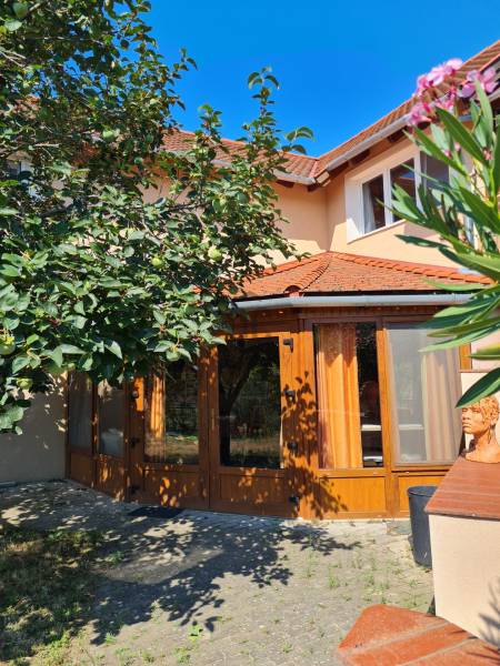 Badacsonyban vált eladóvá ez a különleges atmoszférával rendelkező épület, mely egyedi kialakításával egyből kitűnik az őt körülölelő ingatlanok közül. A területről és a ház egészéből meseszép a panoráma a Balaton vizére, de ha ez nem lenne elég, a Badacsony is ott magasodik az épület mögött.A belterületi, 1519 négyzetméteres telken a jelenlegi tulajdonos tervei és álmai alapján készült el 2005-ben a hétvégi házként bejegyzett ingatlan – mely családi otthonnak is kitűnő választás lehet -. Az épület alapjául egy már meglévő bazaltkő pince szolgált, ez került átépítésre és bővítésre korszerű anyagok felhasználásával.A ház két szinten összesen 166 négyzetméternyi hasznos alapterülettel rendelkezik.A földszinten kialakított helyiségeket az előtérből közelíthetjük meg. Itt található egy 27 négyzetméteres, parasztfödémes, meghitt hálószoba, mely közvetlen kertkapcsolattal rendelkezik és akár két különálló hálóvá osztható. Mellette kapott helyet a lépcsőház, egy fürdőszoba, tároló, pince és egy műterem.Az emeleten lévő helyiségek közül a teljes üvegfelülettel ellátott nappali/műterem és a hozzá tartozó terasz olyan egyedi és megismételhetetlen hangulatot áraszt, hogy itt egyből az az érzése az embernek, hazaért...Ezt a nappali részt egészíti ki még egy közlekedő, hálószoba, fürdőszoba, konyha és étkező, valamint egy loggia is.Az épület mindkét szintjén beépítésre került egy-egy fatüzelésű kályha, így hűvösebb időszakban ezek szolgáltatják a meleget.A kert teljesen körbekerített, több autó egyidejű parkolása is megoldható telken belül.Az udvar teraszos kialakítású, akár egy medence, gyermek játszó vagy nyári konyha kiépítésére is bőven van még hely.Az épület melletti részen egy fedett, hangulatos kerti kiülő is helyet kapott, a kert alsó részén pedig egy téglából épült tárolót is építettek.A ház egész évben aszfaltos úton könnyen megközelíthető, a Balaton partjától gyalogosan 15 percre, a központtól 2 perces autóútra van.Ajánlom az ingatlant mindazok figyelmébe, akik a “béke szigetét” keresik távol a világ zajától. Az épület állandó lakhatásra és nyaralónak is egyaránt tökéletes választás lehet!Amennyiben kérdése merülne fel az épülettel kapcsolatban, vagy szeretné azt megtekinteni, kérem keressen megadott elérhetőségeim egyikén!